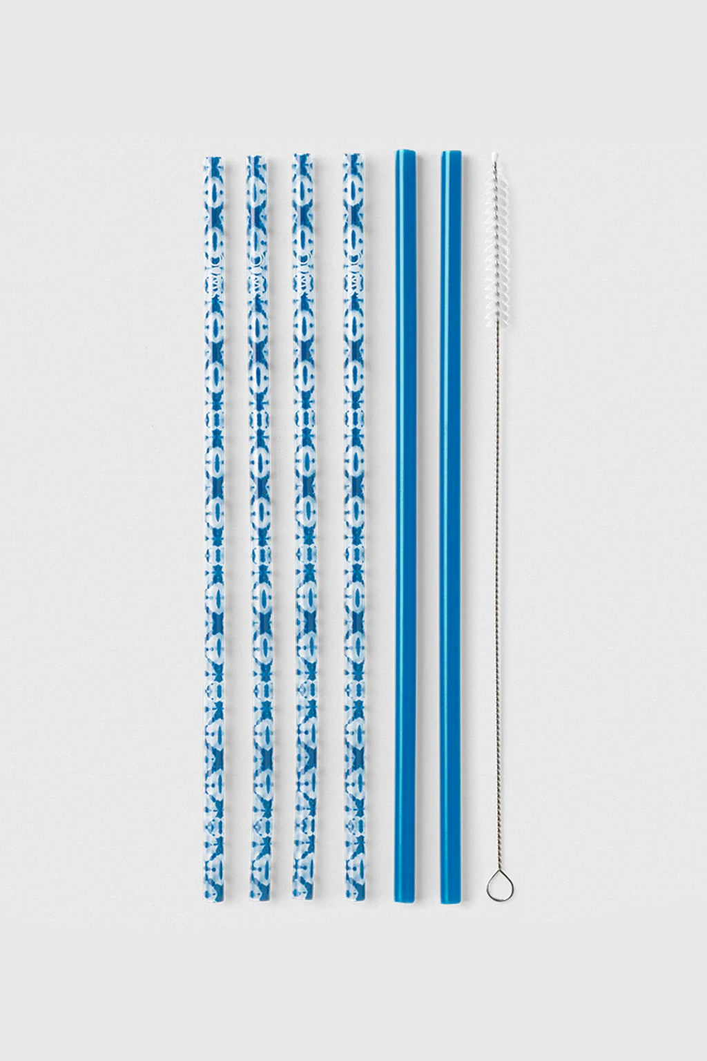 - 4 printed straws, 2 solid color straws, and 1 cleaning brush